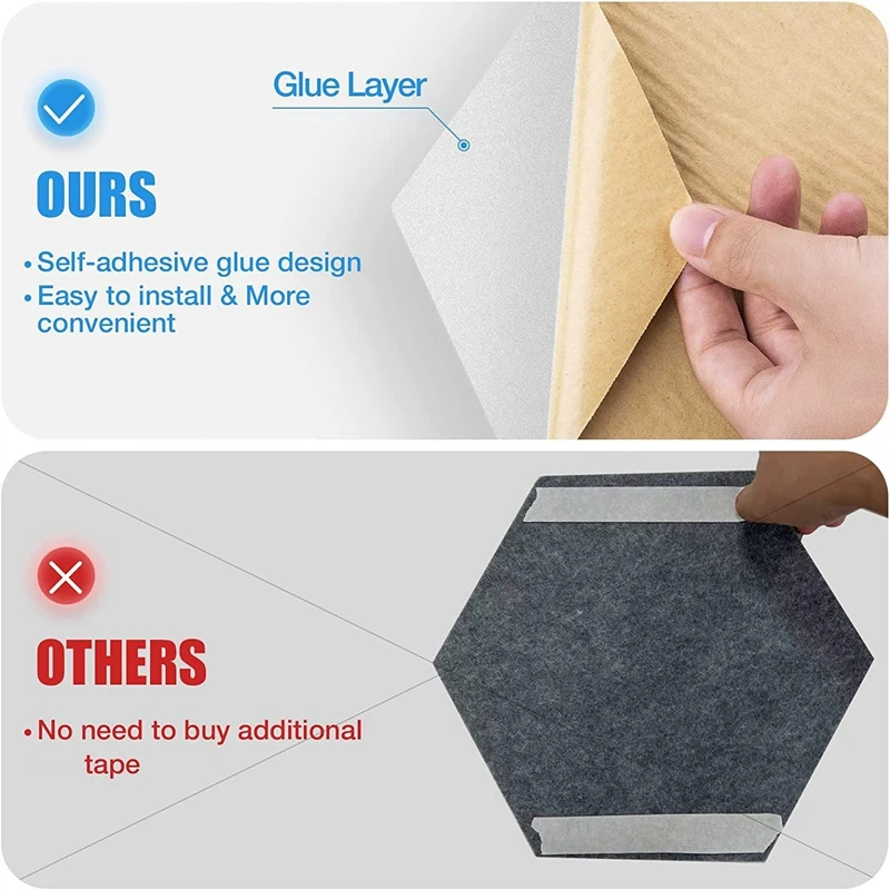 Acoustic panels with self-adhesive design.When you recive the acoustic foam panels, just peel and stick.
